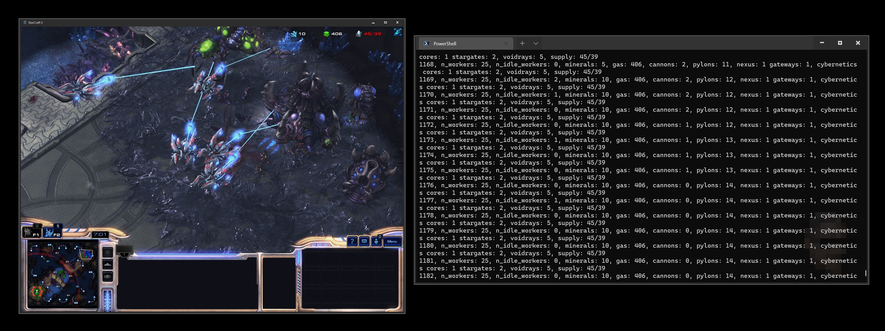 f"stargates: {self.structures(UnitTypeId.STARGATE).amount}, voidrays: {self.units(UnitTypeId.VOIDRAY).amount}, supply: {self.supply_used}/{self.supply_cap}")