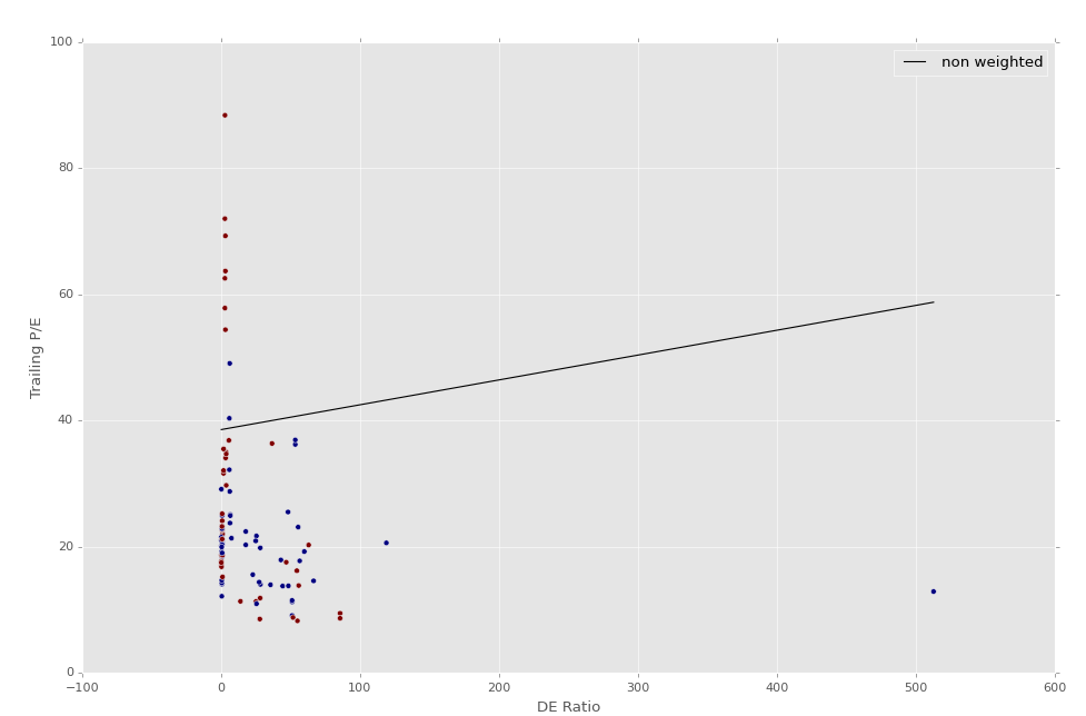 The other feature being used here is Trailing P/E, which is trailing price to earnings. Trailing, meaning according to older values. So what is the price, today, in accordance with earnings from the past, usually 12 months.